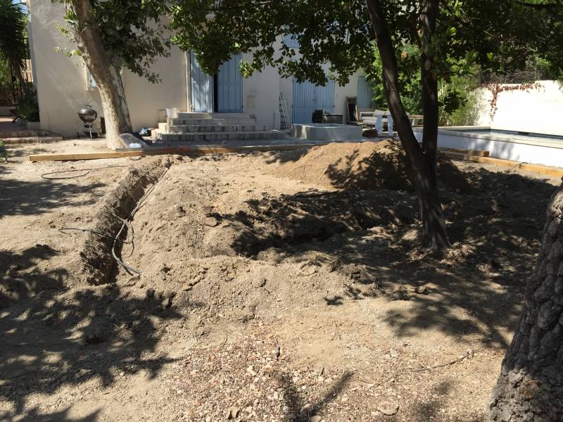 galets polis de la Durance. Cet aménagement n'est pas terminé car le propriétaire de cette demeure est un passionné de plantes qui veut lui même terminer l'aménagement de son jardin en plantant diverses variétés